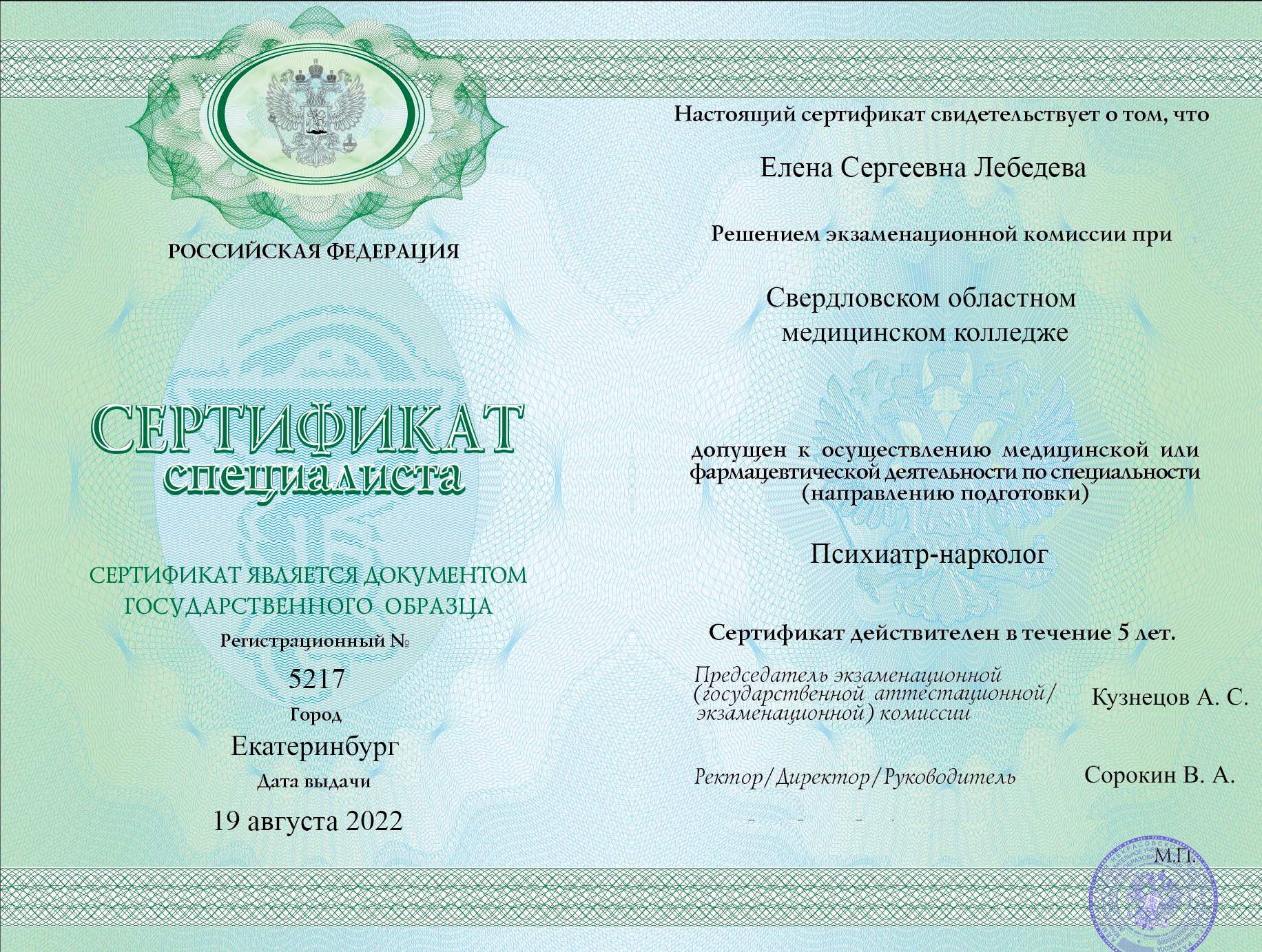 Елена Сергеевна Лебедева врач нарколог клиники доктора Стукаловой в Валуйках
